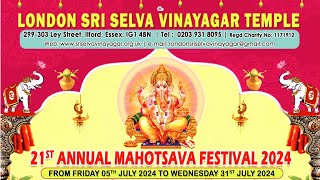 "LIVE Day 21 in London at the Ealing Sri Kanaga Thurkkai Amman Temple for the Annual Mahotsavam Festival in 2024." ......