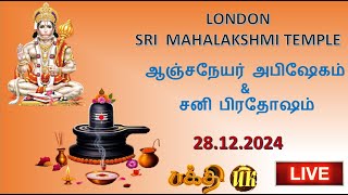 Live London Sri Mahalakshmi Temple - ஆஞ்சநேயர் அபிஷேகம் & சனி பிரதோஷம் 28th DEC 2024 ......